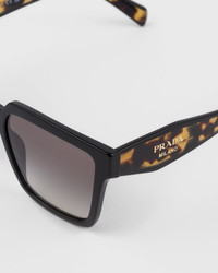 Sunglasses characterized by a rectangular frame and thick rims. Refined bonded acetate layers in contrasting colors on the geometric temples add a sophisticated and contemporary touch. Prada lettering logo. - Product code: SPR24Z_E1AB_F00A7_C_056 - Acetate frame front in Black - Frame compatible with graduated lenses - 100% UVA / UVB protection - Standard fit - Lens-nose-temple measurement: 56-16-140 mm - Article comes with dedicated packaging - Other available colors - Imported MATERIALS Acetate