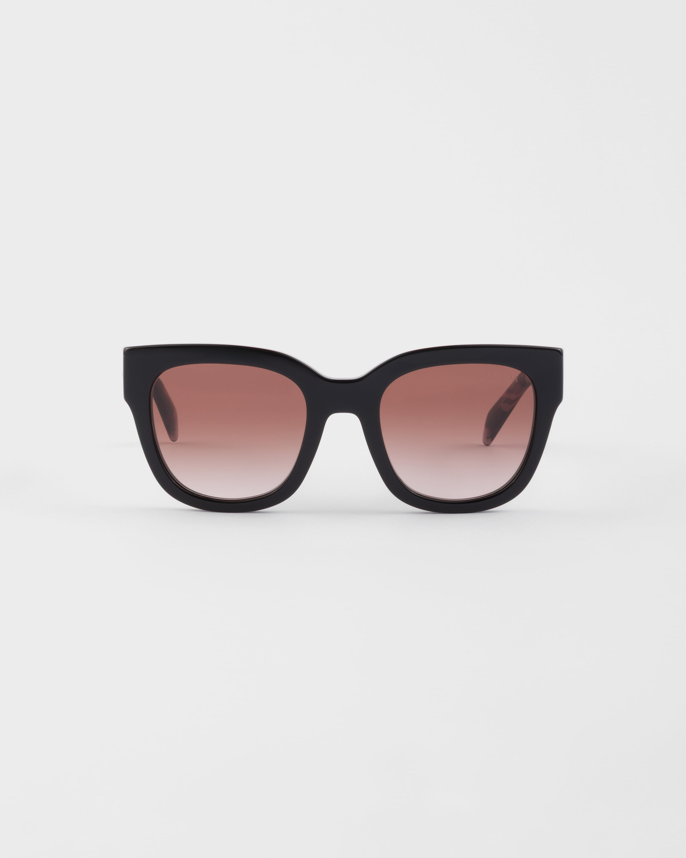 Acetate sunglasses characterized by an oversized design with a slight cat-eye silhouette. The large, geometric front is paired with chunky temples decorated with the Prada lettering logo. - Product code: SPRC04_E28F_FE90P_C_052 - Recycled bio-acetate frame front - Color: Black + Orchid Pink Tortoiseshell - Frame compatible with graduated lenses - 100% UVA / UVB protection - Standard Fit - Lens-nose-temple measurement: 52-22-145 mm - Article comes with dedicated packaging - Other colors available - Imported MATERIALS Acetate