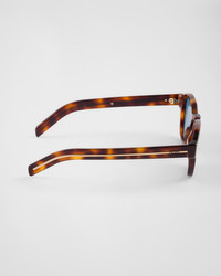 Acetate sunglasses with casual elegance. The pantos front is characterized by refined triangular rivets, while the temples are embellished with the iconic metal plaque featuring with the Prada lettering logo. - Product code: SPRA16_F15W_FE04D_C_049 - Acetate frame front - Color: Classic tortoiseshell - Frame compatible with graduated lenses - 100% UVA / UVB protection - Polarized crystal lenses - Standard Fit - Lens-nose-temple measurement: 49-24-145 mm - Article comes with dedicated packaging - Other colors available - Imported MATERIALS Acetate