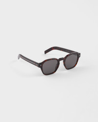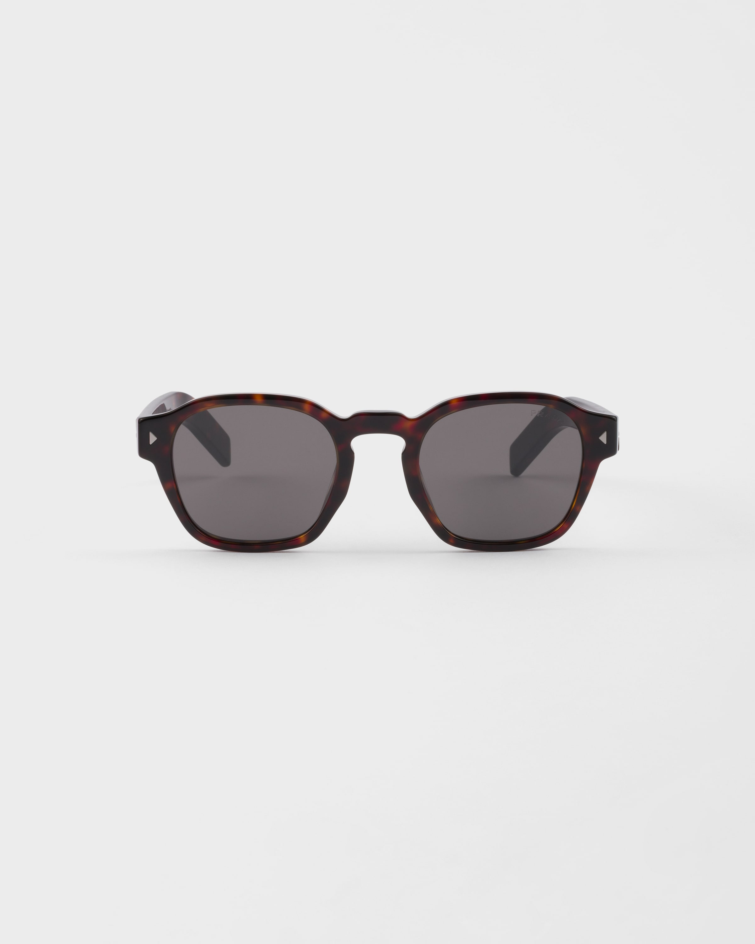 Acetate sunglasses with casual elegance. The pantos front is characterized by refined triangular rivets, while the temples are embellished with the iconic metal plaque featuring with the Prada lettering logo. - Product code: SPRA16_E17N_FE731_C_049 - Recycled bio-acetate frame front - Color: Briarwood Tortoiseshell - Frame compatible with graduated lenses - 100% UVA / UVB protection - Crystal lenses - Standard Fit - Lens-nose-temple measurement: 49-24-145 mm - Article comes with dedicated packaging - Other colors available - Imported MATERIALS Acetate