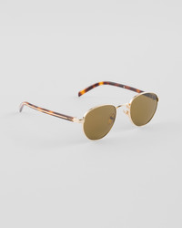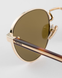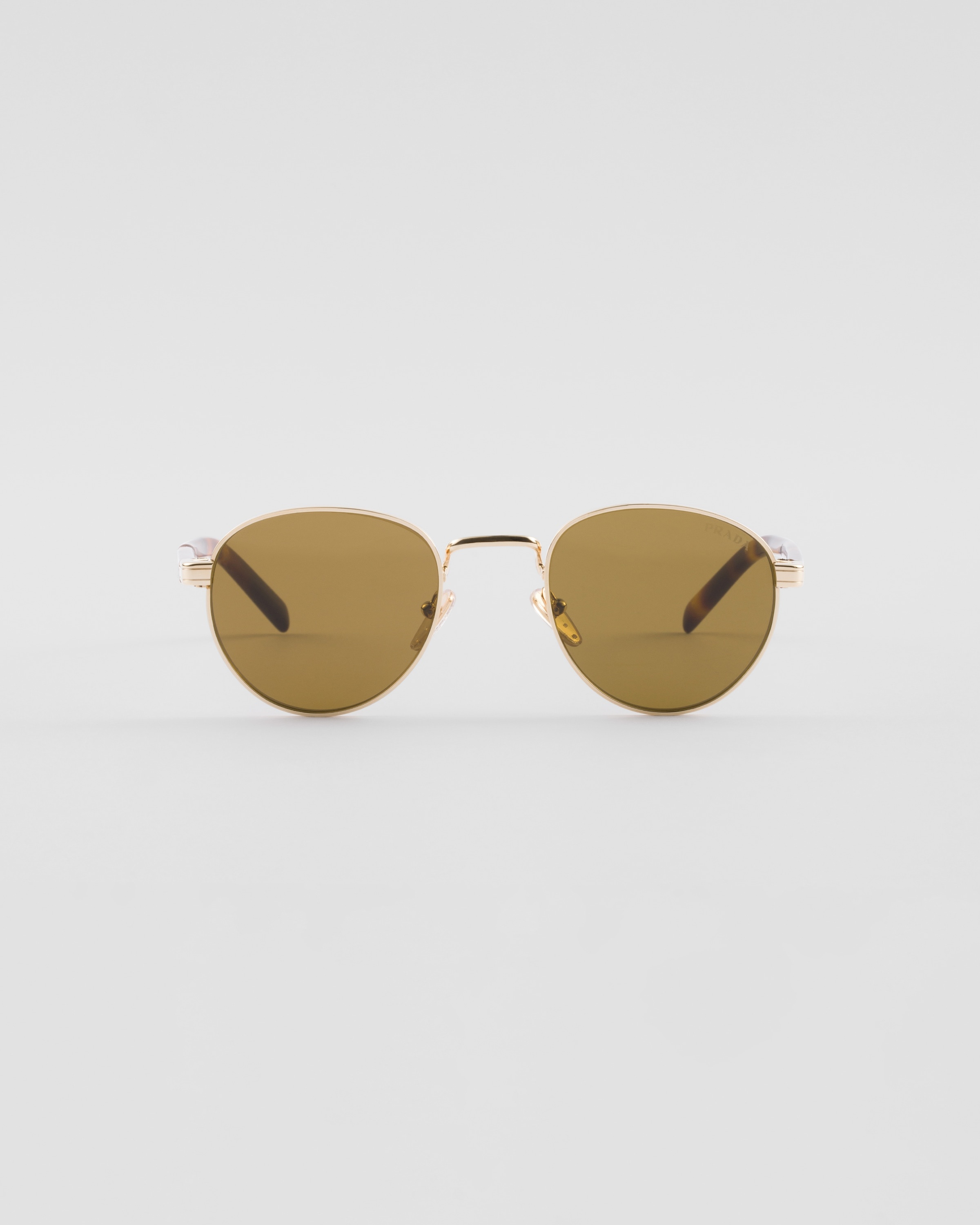 Metal sunglasses with a sleek, contemporary style. The rounded front is combined with thin temples highlighted by the sophisticated metal element with the finely engraved Prada lettering logo. - Product code: SPRB52_E5AK_FE09Z_C_049 - Metal frame front - Color: Pale Gold - Frame compatible with graduated lenses - 100% UVA / UVB protection - Adjustable nose pads suitable for any fit - Lens-nose-temple measurements: 49-21-140 mm - Article comes with dedicated packaging - Other colors available - Imported MATERIALS Metal
