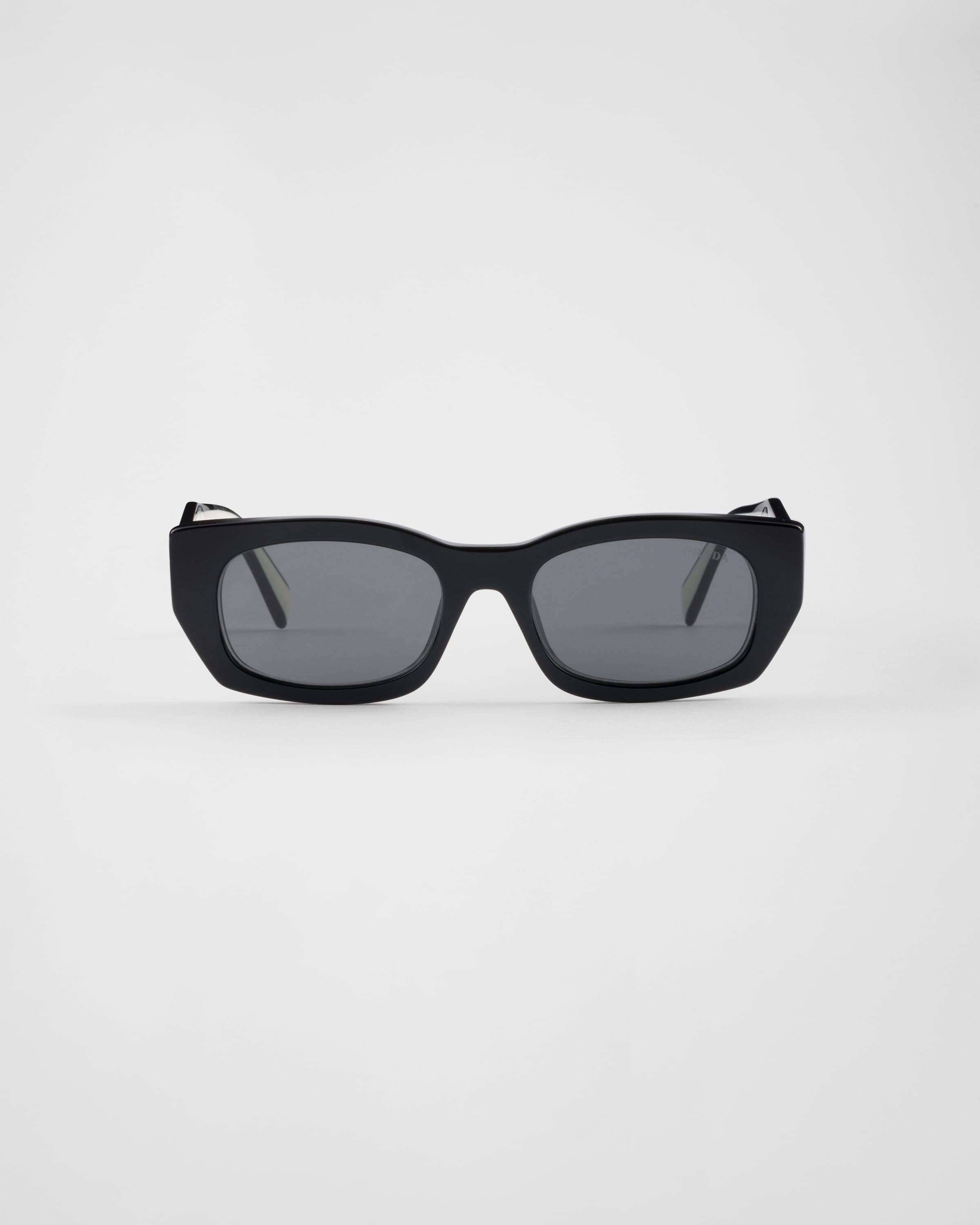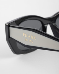 Rectangular acetate sunglasses with chunky rims and temples. The geometric temples are characterized by the refined color contrast that adds a sophisticated, contemporary touch. Prada lettering logo. - Product code: SPRB05_E09Q_FE08Z_C_053 - Acetate frame front - Color: Black + Chalk White - Frame compatible with graduated lenses - 100% UVA / UVB protection - Standard Fit - Lens-nose-temple measurement: 53-19-140 mm - Article comes with dedicated packaging - Other colors available - Imported MATERIALS Acetate