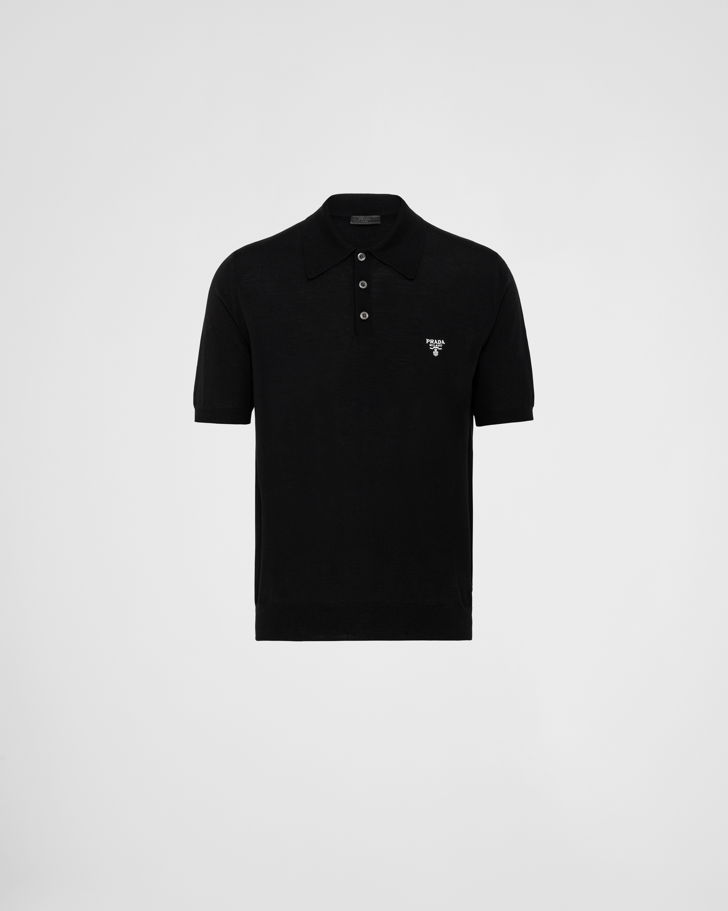 This short-sleeved polo shirt, embellished with the embroidered logo, is made of superfine wool, a characteristic fabric of Prada's most iconic knitwear. Superfine wool, the most valuable in the world, stands out for its extreme lightness and the exceptional length of its fibers, which make it possible to maintain its original shape over time. - Product code: UMB267_1ZLE_F0002_S_212 - Plain stitch knit - Regular fit - Ribbed knit collar - Regular shoulder - Ribbed knit cuffs and hem - Embroidered logo - Front button closure - Imported - The model is 189 cm tall and wears a size 48 Height: 66cm MATERIALS Main material: 100% virgin wool