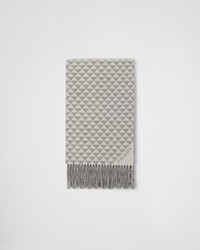 This modern and versatile scarf made of soft wool and cashmere has a reversible design animated by the iconic Symbole geometric motif. The jacquard logo, repeated on opposite corners of the scarf, adds a distinctive touch to the accessory. - Product code: 1FS056_2CON_F052N - Jacquard logo - Jacquard knit - Fringe on two sides - 90% wool 10% cashmere - Imported Height: 190cm Width: 28cm MATERIALS Main material: Wool, cashmere
