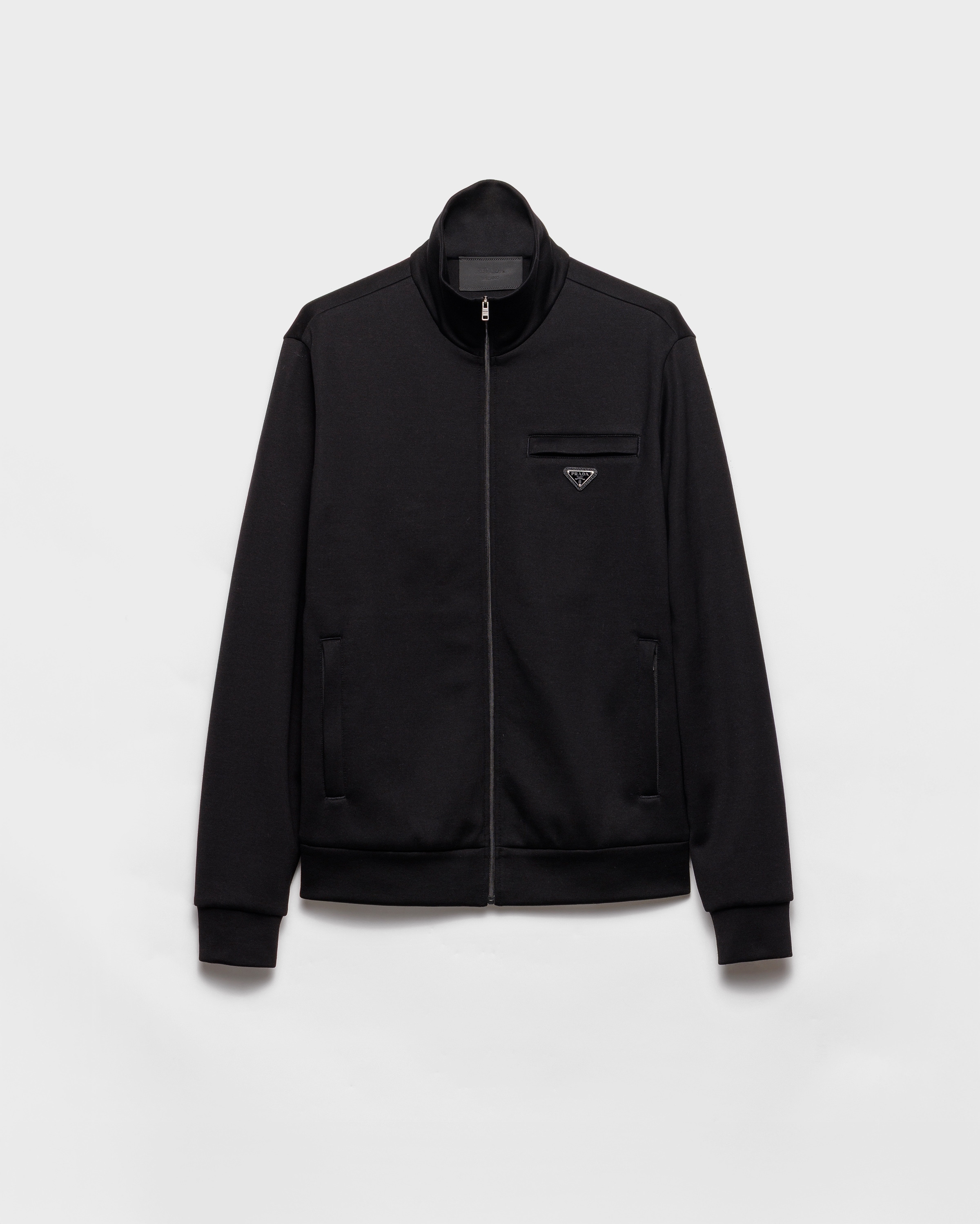 This blouson jacket made of technical cotton has a sleek silhouette with sporty style. The garment, defined by its boxy cut and stand-up collar, is decorated with the iconic enameled metal triangle logo. - Product code: UJL58C_11OQ_F0002_S_OOO - Boxy fit - Long sleeves - Stand-up collar - Straight hem - Zipper closure - Enameled metal triangle logo - Length 68 cm, Size: M - Welt zipper pockets - Imported - The model is 191 cm tall and wears a size 48 Height: 68cm MATERIALS Main material: 70% cotton 30% polyamide