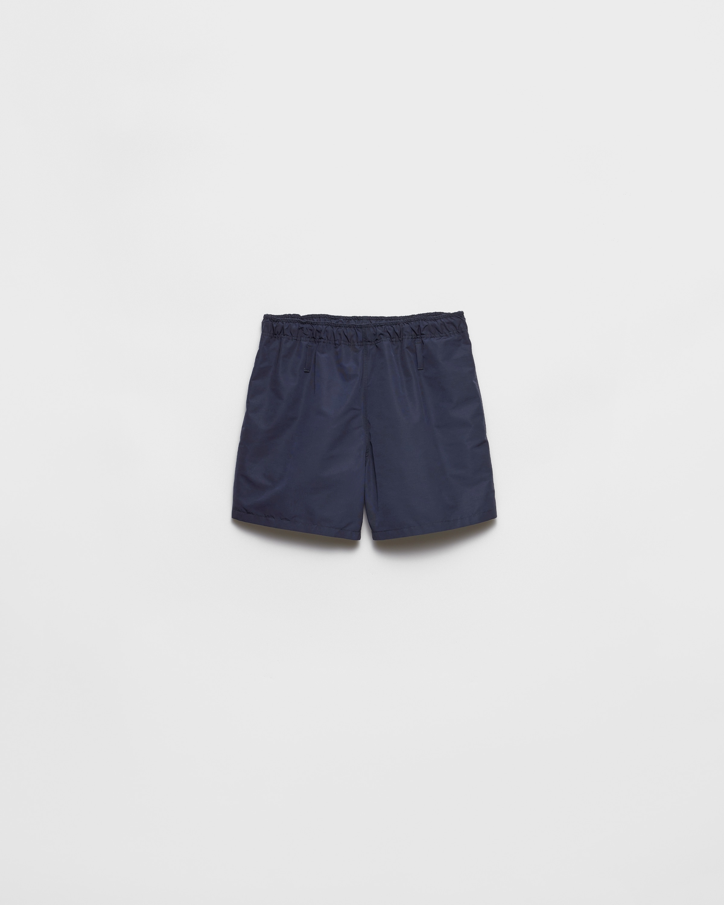 These technical fabric swim trunks are characterized by their sleek design completed with sporty yet refined details. For sustainable care to preserve the product's characteristics and reduce microfiber shedding, we recommend not washing the item too often. Let the product air out after every use and have it dry cleaned at a specialized ecological dry cleaners. - Product code: UB378_17K8_F0008_S_OOO - Straight fit - Elasticized waistband with drawstring - Mesh lining - Front welt pockets and back patch pockets - Re-Nylon pouch with triangle logo and sartorial logo label - Imported - The model is 189 cm tall and wears a size 48 Height: 38cm MATERIALS Main material: 70% polyamide 30% recycled polyamide
