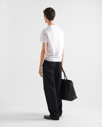 A plain cotton tee is a timeless staple piece. Cut from smooth jersey in a slim fit, these t-shirts come in a pack of three. They are embellished with the Prada triangle logo at the back. - Product code: UJM492_ILK_F0009_S_181 - 3-pack - Slim fit - Ribbed crew-neck - Short sleeves - Prada triangle logo label at the back of the neck - 100% cotton - Slim Fit - Fits slightly small to size - We recommend buying one size larger - Please note, intimates can only be returned in new condition. Items such as underwear, lingerie and tights should be unworn, in their original packaging, with all labels attached - Imported Height: 68cm MATERIALS Cotton
