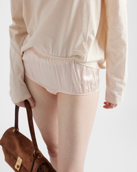 These satin briefs with vintage allure are completed with the iconic enameled metal triangle logo. - Product code: SP6616_17MZ_F0442_S_OOO - Briefs fit - Enameled metal triangle logo - Imported - The model is 176 cm tall and wears a size 38 MATERIALS Main material: 100% silk