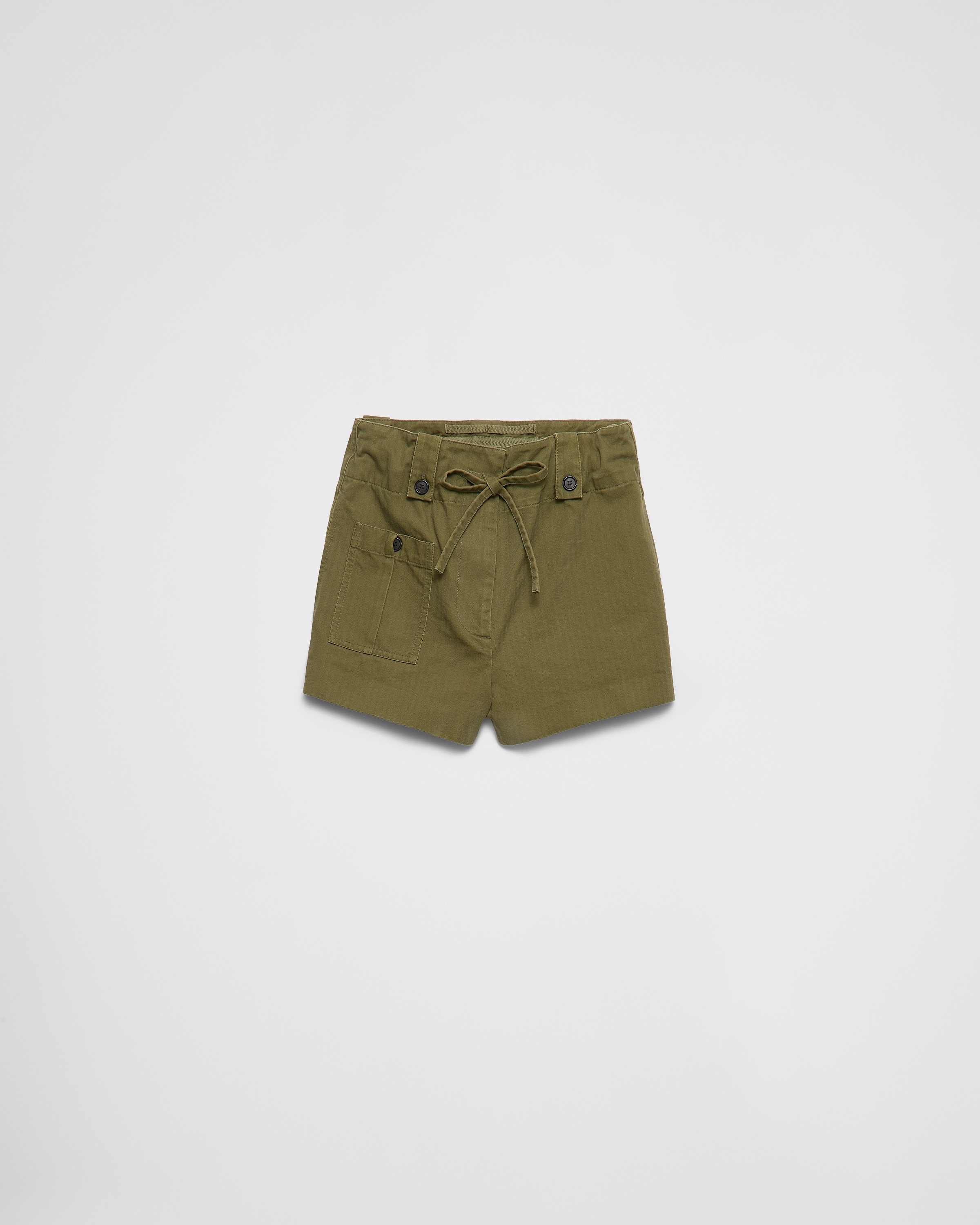 The pragmatic nature of utility wear inspires the design of these chevron shorts with a washed finish and relaxed fit. - Product code: P275IG_162G_F0161_S_OOO - Bermudas - Zipper fly with hook - Inseam pockets - Back flap pockets - Imported - The model is 180 cm tall and wears a size 38 Height: 34cm MATERIALS Main material: 100% cotton