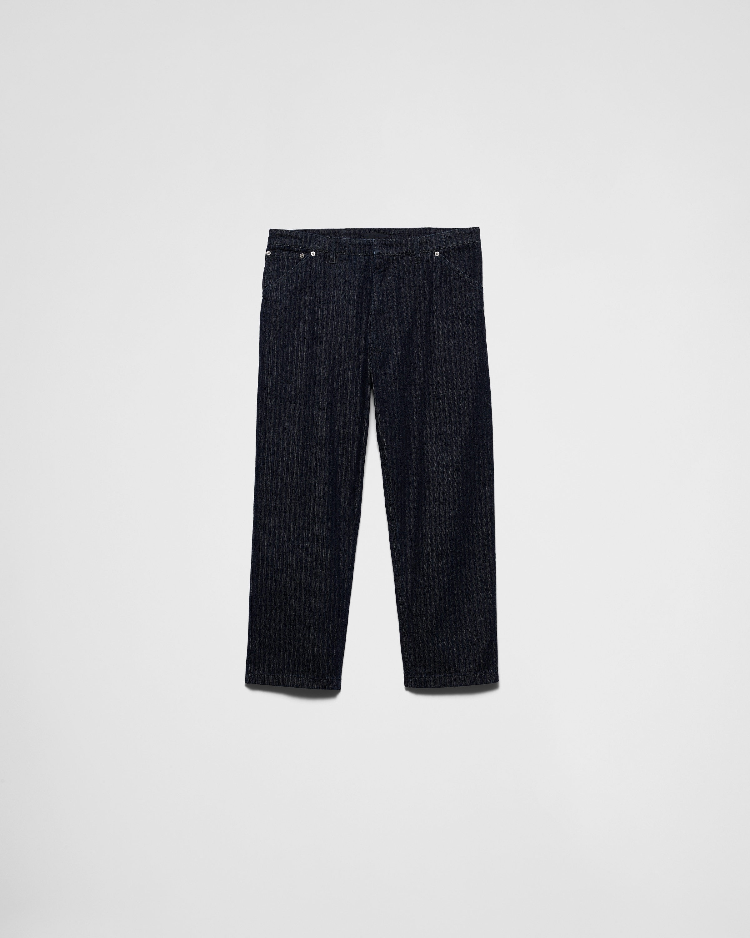 The unique texture of chevron denim chevron enriches these relaxed fit jeans made from fabric with a rinsed denim wash that gives the garment a charming vintage look. - Product code: GEP403_16HD_F0008_S_OOO - Rinsed denim treatment - Loose fit - Regular waist - Hem width: 22 cm, Size: M - Zipper fly with hook - Matching stitching - Total length: 100 cm, Size: M - Triangle logo - Imported - The model is 189 cm tall and wears a size 48 Height: 100cm MATERIALS Main material: 100% cotton