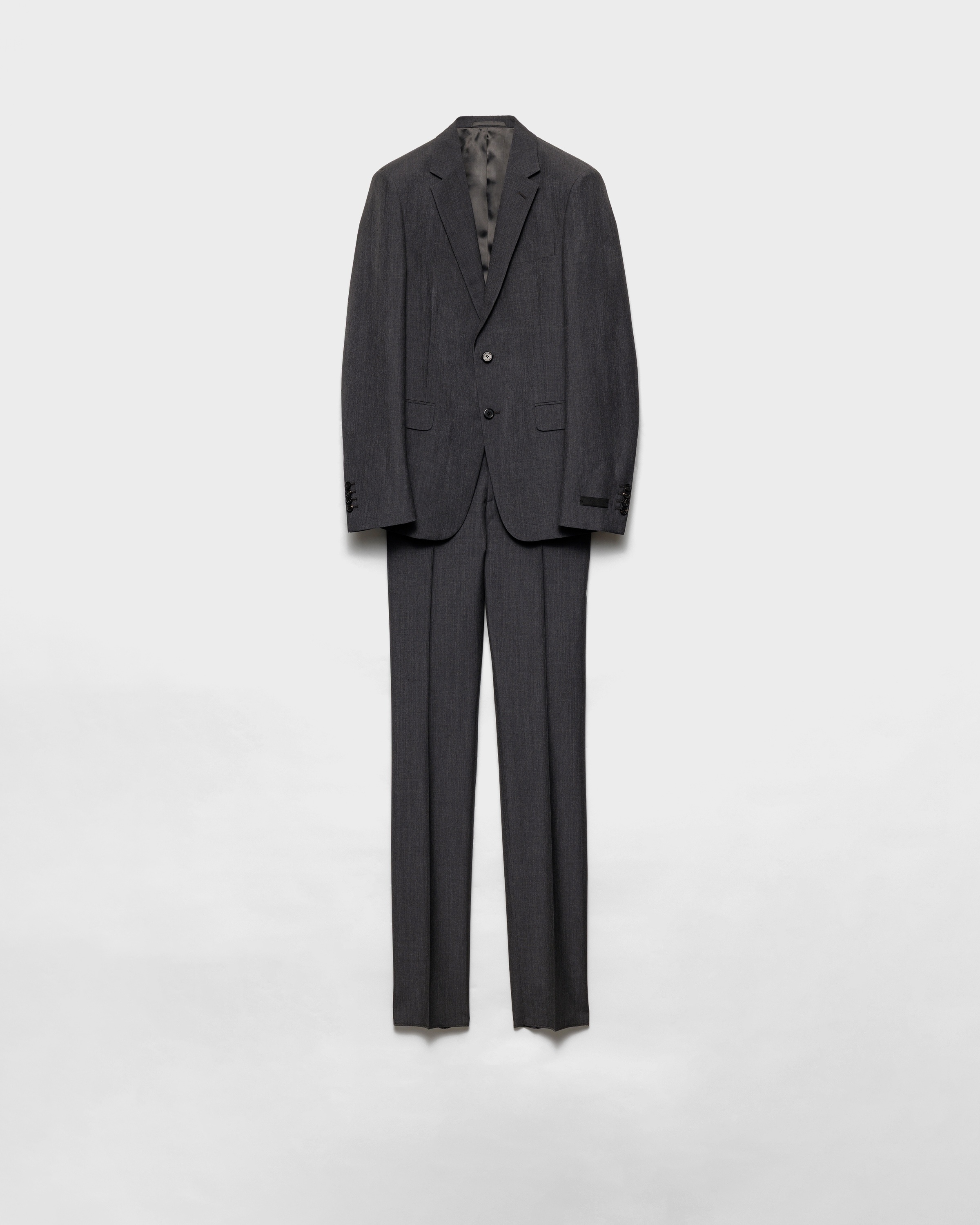 Elegant single-breasted two-button suit made of wool and mohair. Jacket with classic lapels and flap pockets. - Product code: UAF420_1P3Z_F0AGC_S_152 - Slim-fit silhouette - Single-breasted suit with two buttons - Semi-constructed shoulder - Classic lapels - Flap pockets - Back vents - Partially lined - Trousers: - Zipper fly - Angled slash pockets - Pockets with buttons on the back - 18 cm hem width - 75% wool, 25% mohair - Imported - The model is 188 cm tall and wears a size 48 Height: 72cm MATERIALS Main material: 25% mohair 75% wool