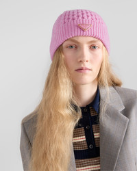 A cable-knit motif gives this beanie sophisticated, classic allure. The wool accessory is decorated with the iconic enameled metal triangle logo. - Product code: 1HC390_2HMF_F0028 - Enameled metal triangle logo - Imported MATERIALS Main material: Virgin wool