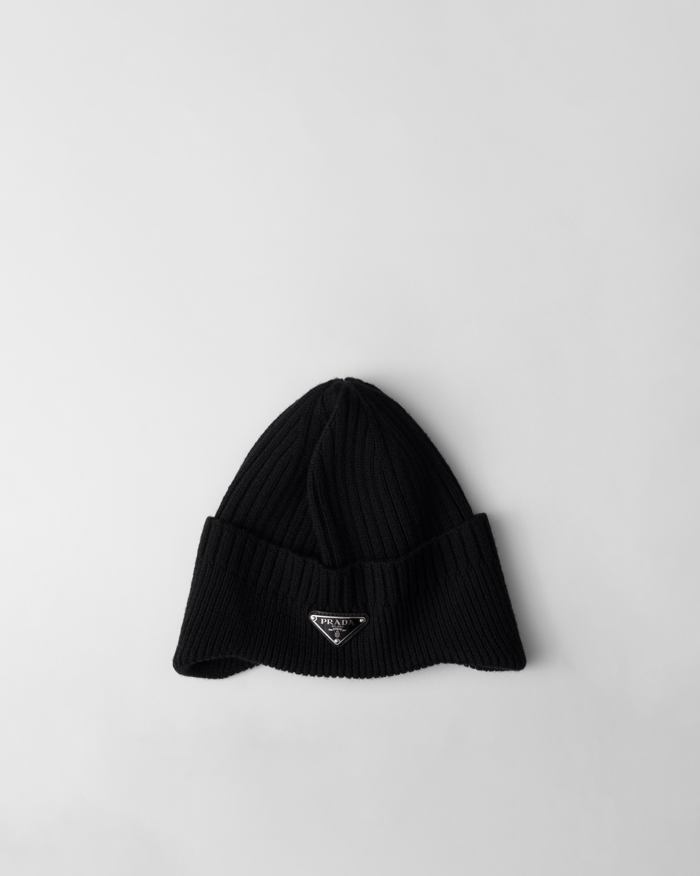 The iconic enameled metal triangle logo embellishes this cozy knit beanie made of warm wool. - Product code: 2HC389_2DZL_F0002 - Enameled metal triangle logo - Imported MATERIALS Main material: Virgin wool