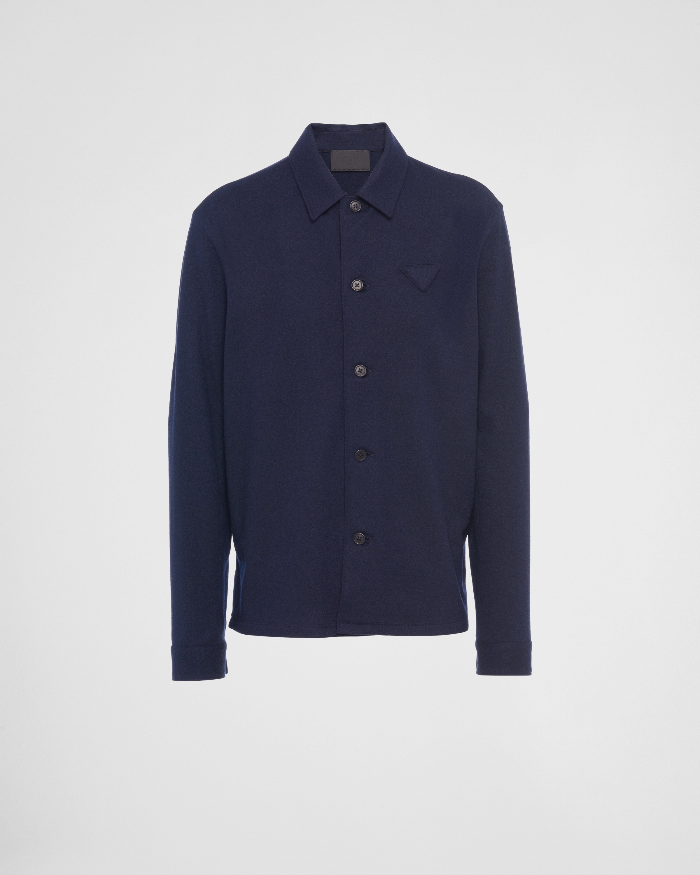 Sleek and refined, this shirt is characterized by its original horn button closure that underlines the hybrid soul of the garment that is decorated with the triangle logo reinterpreted as a fabric patch. - Product code: SC551_1Y5S_F0SVF_S_212 - Straight fit - Classic collar - Straight hem - Cuff with horn button - Horn button front closure - Fabric triangle logo - Top-stitching - Imported - The model is 186 cm tall and wears a size 48 Height: 68cm MATERIALS Main material: 50% cashmere 50% virgin wool