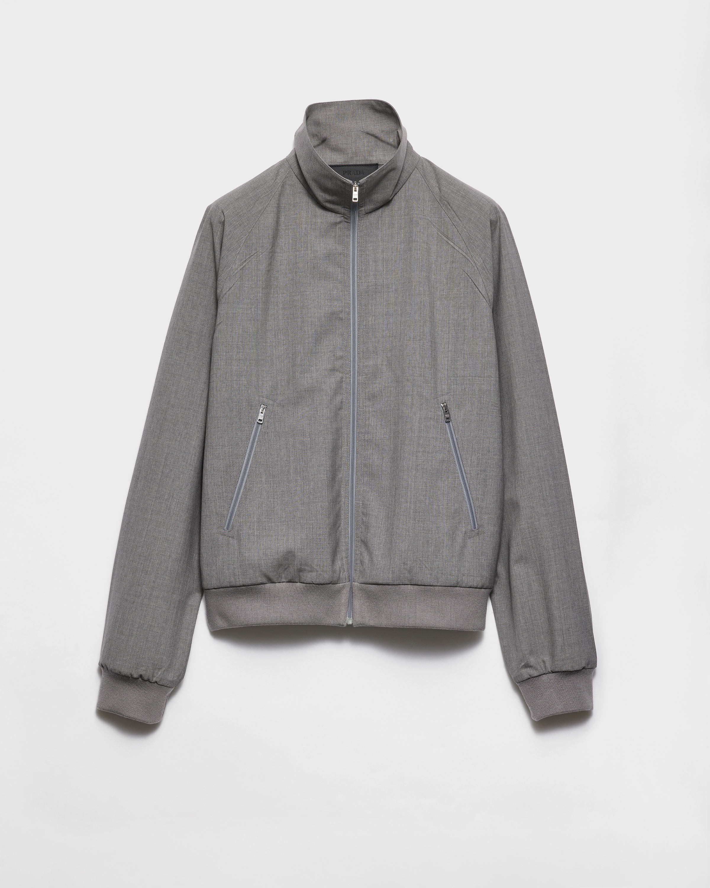 This wool jacket has a light silhouette defined by sleek lines and simple details. The sporty yet refined garment is completed by the iconic geometric shape of the triangle logo. - Product code: SGC874_1XMY_F0031_S_OOO - Regular fit - Stand-up collar - Raglan sleeves - Zipper closure - Visible zipper pockets - Ribbed knit cuffs - Regular shoulder - Straight ribbed knit hem - Unlined - Fabric triangle logo and sartorial logo label - Imported - The model is 189 cm tall and wears a size 48 Height: 65cm MATERIALS Main material: 100% virgin wool