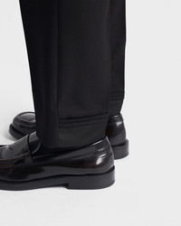 Classic tailoring is enriched with iconic elements like Prada's metal triangle logo that becomes, in the new menswear collection, an amulet and timeless symbol. - Product code: UP0375_155E_F0002_S_OOO - Slim fit - Constructed waistband - Concealed button fly with hook - Angled front slash pockets with third small zipper pocket - Double welt pockets with button on the back - Hem width: 18 cm - Enameled metal triangle logo - Imported - The model is 178 cm tall and wears a size 38 Height: 102cm MATERIALS Main material: 100% virgin wool