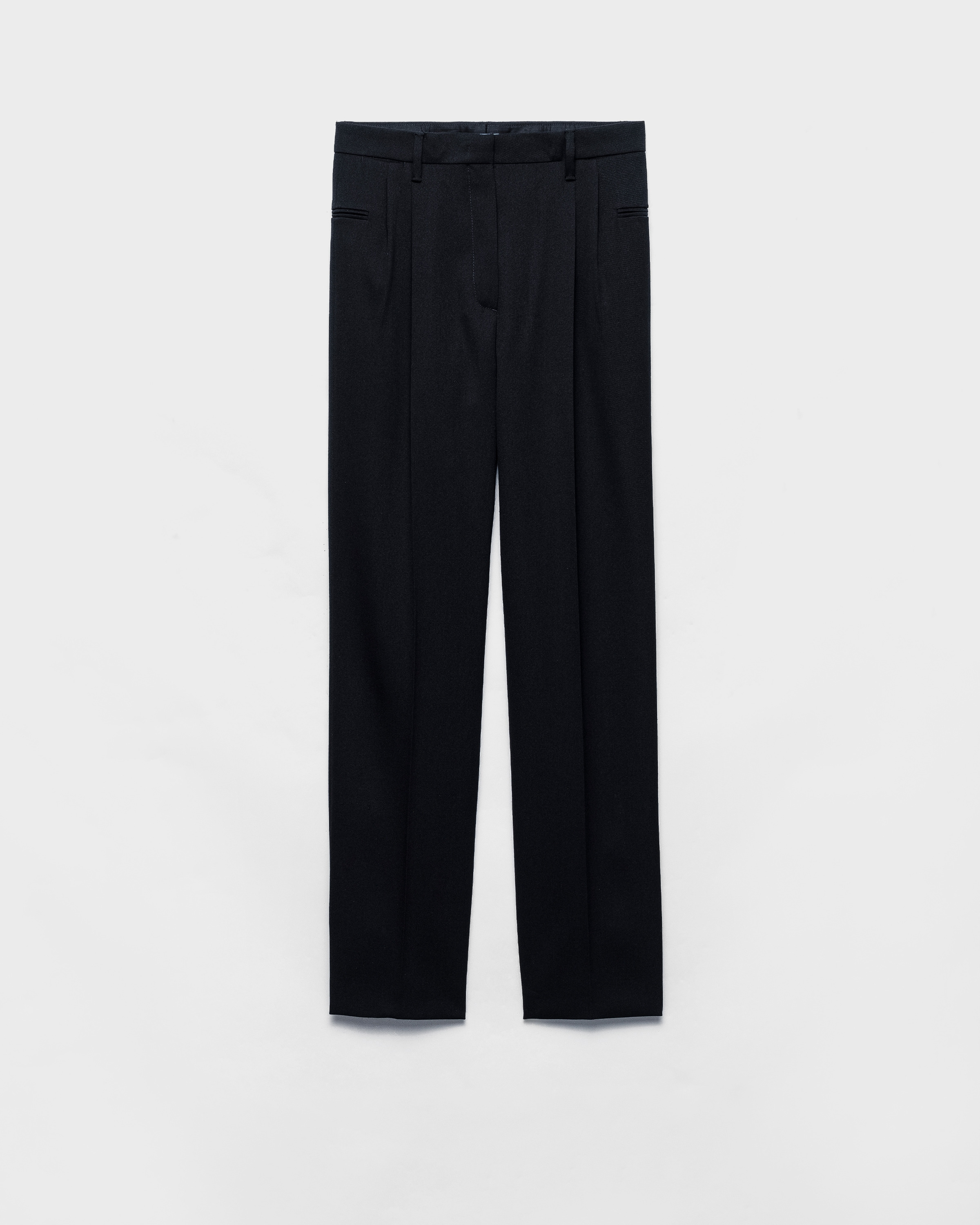 Lines and details borrowed from menswear define these wool pants. The silhouette combines sophisticated tailoring with relaxed, contemporary elegance. - Product code: P247J_17V1_F0002_S_OOO - Menswear fit - Unlined garment - Zipper fly with hook - Double welt pockets on the side - Imported - The model is 180 cm tall and wears a size 38 Height: 34cm MATERIALS Main material: 100% wool