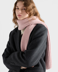 This refined, warm wool scarf is made with a soft, dense knit. The enameled metal triangle logo completes the accessory with a distinctive note. - Product code: 1FS137_2DZL_F0D91 - Enameled metal triangle logo - Fisherman's rib knit - 100% virgin wool - Imported Height: 160cm Width: 18cm MATERIALS Main material: Recycled polyester