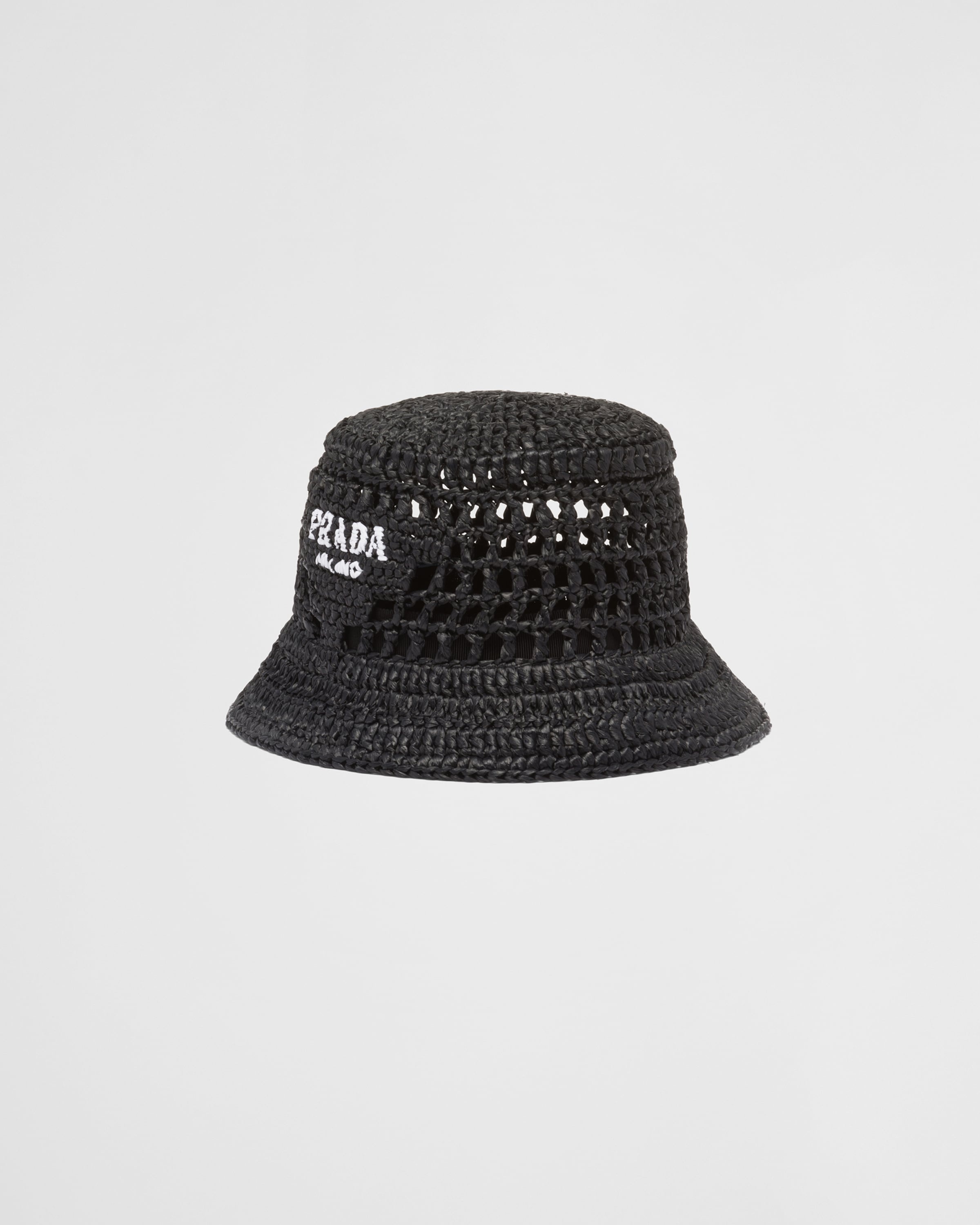 The streetwear-inspired bucket hat, one of Prada's iconic accessories, comes in a new crochet version with a summery mood. The lettering logo embroidered on the front embellishes the accessory. - Product code: 1HC137_2A2T_F0002 - Embroidered lettering logo - Imported MATERIALS Main material: Viscose