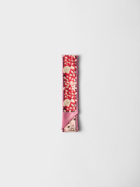 Printed silk twill skinny scarf