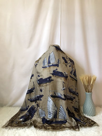 Hermes Ship Design by F. de La Perriere Silk Scarf
