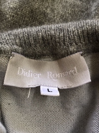 #87 PLEASE ASK ANY QUESTION BEFORE BUYING!!! THIS IS USED CLOTHING!!! PLEASE DON’T EXPECTED IT TO BE LIKE NEW OR IN PRISTINE CONDITION!!! BRAND : Didier Ronsard SIZE ON TAG : L MATERIAL : 100% Cashmere MEASUREMENT : 🚠 - Width (armpit to armpit) : 18.5 INCH - Length (shoulder to end of garment) : 21.63 INCH CONDITION : Has SMALL STAIN!!! NO HOLE!!! An item that has been used or worn previously GREAT VINTAGE CONDITION (USED CLOTHING) **WE ARE USING MALAYSIA INTERNATIONAL REGISTER. PLEASE LEAVE YOUR PHONE NUMBER ON THE NOTE WHILE MAKE A PURCHASE** THANK YOU SO MUCH FOR WATCHING MY ITEM & HAPPY SHOPPING