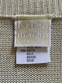 #149 PLEASE ASK ANY QUESTION BEFORE BUYING!!! THIS IS USED CLOTHING!!! PLEASE DON’T EXPECTED IT TO BE LIKE NEW OR IN PRISTINE CONDITION!!! BRAND : Krizia Maglia SIZE ON TAG : 40 MATERIAL : 80% Cotton 15% Acetate 5% Silk MEASUREMENT : 🚠 - Chest (armpit to armpit) : 20.5 INCH - Length (shoulder to end of garment) : 29 INCH - Shoulders (shoulder to shoulder) : 23.25 INCH - Sleeve Length (shoulder seam to end of sleeve) : 22.63 INCH CONDITION : Has SMALL STAIN!!! NO HOLE!!! An item that has been used or worn previously GREAT VINTAGE CONDITION (USED CLOTHING) **WE ARE USING MALAYSIA INTERNATIONAL REGISTER. PLEASE LEAVE YOUR PHONE NUMBER ON THE NOTE WHILE MAKE A PURCHASE** THANK YOU SO MUCH FOR WATCHING MY ITEM & HAPPY SHOPPING