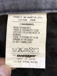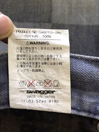 #76 PLEASE ASK ANY QUESTION BEFORE BUYING!!! THIS IS USED CLOTHING!!! PLEASE DON’T EXPECTED IT TO BE LIKE NEW OR IN PRISTINE CONDITION!!! BRAND : Swagger SIZE ON TAG : 30 MATERIAL : 100% Cotton MEASUREMENT : 🚠 - Waist : 34 INCH - Length : 43 INCH - Inseam : 32.5 INCH - Leg Opening : 7.63 INCH - Front Rise : 10.75 INCH -Thigh : 10.75 INCH CONDITION : Has SMALL STAIN!!! NO HOLE!!! An item that has been used or worn previously GREAT VINTAGE CONDITION (USED CLOTHING) **WE ARE USING MALAYSIA INTERNATIONAL REGISTER. PLEASE LEAVE YOUR PHONE NUMBER ON THE NOTE WHILE MAKE A PURCHASE** THANK YOU SO MUCH FOR WATCHING MY ITEM & HAPPY SHOPPING