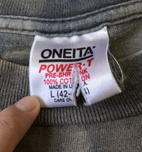 PLEASE ASK ANY QUESTION BEFORE BUYING!!! THIS IS USED CLOTHING!!! PLEASE DON’T EXPECTED IT TO BE LIKE NEW OR IN PRISTINE CONDITION!!! BRAND : Oneita Power-T SIZE ON TAG : L MATERIAL : 100% Cotton Preshrunk MEASUREMENT : 🚠 - Width (armpit to armpit) : 20.13 INCH - Length (shoulder to end of garment) : 27.25 INCH CONDITION : Has SMALL STAIN!!! NO HOLE!!! FADED COLOUR!!! An item that has been used or worn previously GREAT VINTAGE CONDITION (USED CLOTHING) **WE ARE USING MALAYSIA INTERNATIONAL REGISTER. PLEASE LEAVE YOUR PHONE NUMBER ON THE NOTE WHILE MAKE A PURCHASE** THANK YOU SO MUCH FOR WATCHING MY ITEM & HAPPY SHOPPING