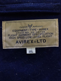 #138 PLEASE ASK ANY QUESTION BEFORE BUYING!!! THIS IS USED CLOTHING!!! PLEASE DON’T EXPECTED IT TO BE LIKE NEW OR IN PRISTINE CONDITION!!! BRAND : Avirex SIZE ON TAG : 2XL MATERIAL : 90% Hair 10% Nylon MEASUREMENT : 🚠 - Width (armpit to armpit) : 24.5 INCH - Length (shoulder to end of garment) : 33 INCH - Shoulders (shoulder to shoulder) : 20.25 INCH - Sleeve Length (shoulder seam to end of sleeve) : 26 INCH CONDITION : NO STAIN!!! NO HOLE!!! Has FADED COLOUR!!! An item that has been used or worn previously GREAT VINTAGE CONDITION (USED CLOTHING) **WE ARE USING MALAYSIA INTERNATIONAL REGISTER. PLEASE LEAVE YOUR PHONE NUMBER ON THE NOTE WHILE MAKE A PURCHASE** THANK YOU SO MUCH FOR WATCHING MY ITEM & HAPPY SHOPPING