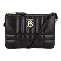 Authentic Burberry Lola Double Pouch Bag Leather Black Like New Quilted lambskin leather with gold-tone hardware Made in Italy Two compartments with top zipper closures One interior slip pocket Adjustable shoulder strap Measures approx 7.5"W x 5.1"H x 1.5"D Comes with Dustbag Details Online since:2023-11-16 Categories: women Category: Bags Sub-category: Handbags Designer: Burberry Condition: 0 Material: Leather Colour: Black Width 7.5 in, Height 5.1 in, Depth 1.5 in Location: empty Reference: 38687117 Measurements Width: 7.5in Height: 5.1in Depth: 1.5in