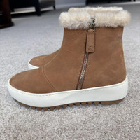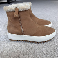 AQUATALIA Alison Suede Shearling Bootie Color Honey Sand Size 7 New Without Box- Never Worn- Only Tried Plush shearling lines the Alison ankle boot with a sumptuous layer of warmth. Crafted in weatherproof soft suede; an athletic outsole and round-toe silhouette ensure optimum comfort. Finished with a zipper closure. Suede and Shearling Outside zipper Fabric lining Leather sock lining 0.8”(20MM) rubber heel 0.2" platform 5.1" shaft height 11.4" shaft circumference Round toe Rubber sole Weatherproof Made in Italy. Details Online since:2024-01-29 Categories: women Category: Shoes Sub-category: Ankle boots Designer: Aquatalia Condition: 0 Material: Suede Colour: Camel Size: 7 US Location: empty Reference: 40872809