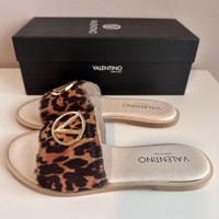 Valentino V Logo Leopard Black Brown Pony Slides Mule Slip On Sandal Flat NEW with Original Box and Dust Bag Size 7 Leather slides with gold tone logo hardware detail Padded insole Made in Italy Slip on style Details Online since:2024-05-16 Categories: women Category: Shoes Sub-category: Sandals Designer: Valentino by mario valentino Condition: 0 Material: Leather Colour: Brown Size: 7 US Location: empty Reference: 44245606