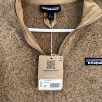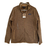 Patagonia Women's Better Sweater® Fleece Jacket Color Grayling Brown Size Large New With Tags Slim fit Front zipper has a wind flap and kissing-welt closure Raglan sleeves, princess seams on back and forward seams on front for contoured shape and fit Zippered handwarmer pockets; interior drop-in pockets Polyester jersey trim on wind flap, pockets, cuffs and hem Hip length Dyed with a low-impact process that significantly reduces the use of dyestuffs, energy and water compared to conventional dyeing methods Fabric : 100% recycled polyester Details Online since:2024-02-03 Categories: women Category: Clothing Sub-category: Jackets Designer: Patagonia Condition: 0 Material: Polyester Colour: Camel Size: L International Location: empty Reference: 41039409