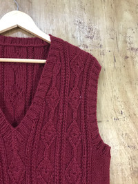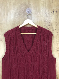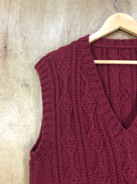 Coloured Cable Knit Sweater - Vintage Unbrand Cable Knit Sweater Vest