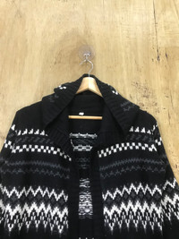 Homespun Knitwear - Native Navajo Patterned Hoodie Open UnButton Knit Cardigan