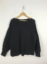 Japanese Brand - American Holic Black Giant Braid Cable Knit Sweater #3034