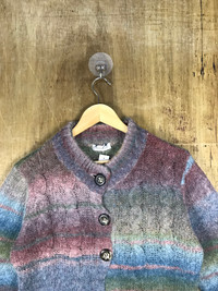 Japanese Brand - Donnez Moi Striped Rainbow Cable Knit Cardigan #3064