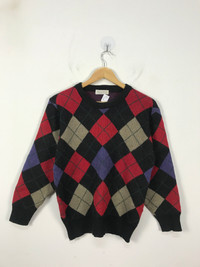 Japanese Brand - Pall Pyra Diamond Argyle Multicolor Knited Pullover #2877
