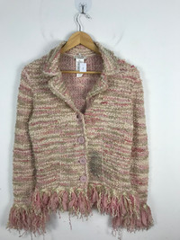 Japanese Brand - Pegorer Blend Stripe Fringe Mohair Cable Knit Cardigan 2910