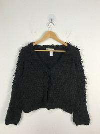 Majestic - Majestic Legon Black Acrylic Mohair Knit CropTop Cardigan