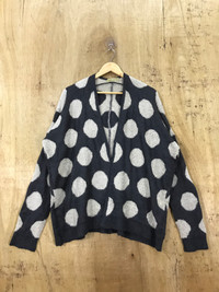 Patterned Cardigans - Big Polkadot Open UnButton Knit Cardigan