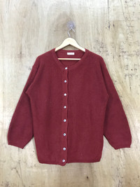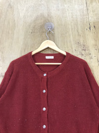 Streetwear - Pan Planning Red Baggy Knit Cardigan ButtonUp