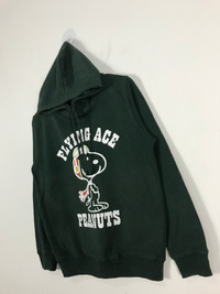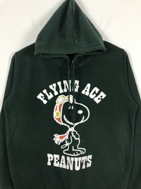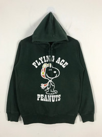 KINDLY PLEASE READ ALL THE DESCRIPTION BELOW BEFORE PURCHASING. DON'T HESITATE TO ASK ANY QUESTION : Snoopy Flying Ace Hoodie Pullover Sweatshirt #2347 Brand Name : Peanuts Tag Size : S [MEASUREMENT] Actual Size manual measurements Armpit To Armpit : 20.5" inches Back collar to bottom : 25" inches Sleeve length : 22" inches Country Of Origin : Made In Japan [CONDITION] -Good Condition as per picture -No torn No stain No major defect -An item that has been used or worn previously. -See Our listing for full details and description of any imperfections. -Please don't expect it to be like new or in pristine condition [SHIPPING] -Item will be shipped in 1-3 working days after payment received. -FOR CANADA @ OTHER COUNTRY WHICH USING "P.O BOX", PLEASE PROVIDE YOUR ''BUZZ CODE/NUMBER'' IN YOUR ADDRESS FOR SECURED DELIVERY. Payment method : Paypal š„ATTENTIONš„ -Please leave your phone number on the note while make a purchase. -Don't forget to check out my store for more great stuff -Please pay close attention to measurements provided. -Do not rely on tag size as pre-worn items may have been altered, stretched or shrunk & vintage sizes do not directly translate the modern sizes. -The best way to ensure a correct fit is to compare our measurements with the measurements of a similar item that you know fits you well. -Please enlarge the photos for clearer image. !ā STRICTLY NO REFUND AND RETURNABLE ITEM AFTER PAYMENT HAS BEEN MADE. !ā THANKS AND HAPPY SHOPPING! CODE : #2347