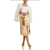 Crafted from luscious liquid velvet, this slip skirt is a simple way to add a sense of glamour to any outfit. Featuring tonal chiffon combos and a side snap placket. Wear with our hammered satir top, or pair with our tailoring for sleek event dressing. • 82% Viscose, 18% Silk • Model is 5'10' • Protessional dry clean only Gold in color Size 10 Waist 16" Length 27.5" New with tags! $595