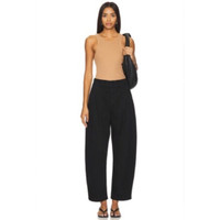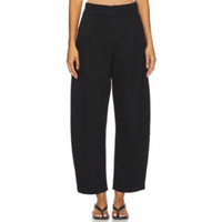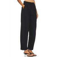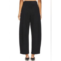 An off-duty staple. This utility inspired chino features a high rise, balloon leg and tapered ankle. This fit is true to size. Looks Like: Dark black with pleat detailing Feels Like: A heavyweight twill fabric with zero stretch 100% regenerative cotton Made in Turkey Machine wash Zip fly with button closure 4-pocket styling Front pintuck detail Brushed twill fabric 23" at the knee narrows to 16" at the leg opening Revolve Style No. AGOL-WP61 Manufacturer Style No. A9229-1632 Black in color Size 30 Waist 17" Rise 12" Inseam 28" New with tags $228