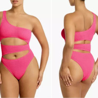 NWT Bond Eye Neon Azalea Pink Rico Cutout One Shoulder One-Piece Swimsuit $200