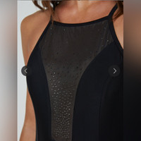 L’agence Belle Shine One-Piece Swimsuit Details & care Gleaming rhinestones give a wet look to this splash-ready swimsuit with a mix of sheer and opaque panels for extra flirty energy. It gets extra support from powermesh and removable cups to keep you feeling confident. • Adjustable straps • Removable cups • Moderate back coverage • 80% nylon, 20% elastane • Hand wash, line dry • Imported • Item #10546771 Black in color Size Large New with tags $275
