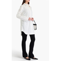 Details ^ • Shirt dress • Cotton-poplin • Pleated back • Button-detailed • Curved hem • Partially concealed button fastenings through front • Mid-weight, non-stretchy fabric • Machine wash or dry clean • Imported 100% Cotton White In color Size Large Measures 21" across the chest Measures 36" in length New with tags $300