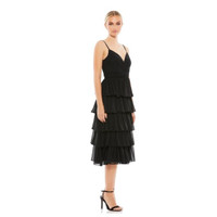 Mac Duggal 55437 Black Ruffle Layered V-Neck Midi Dress Size 0